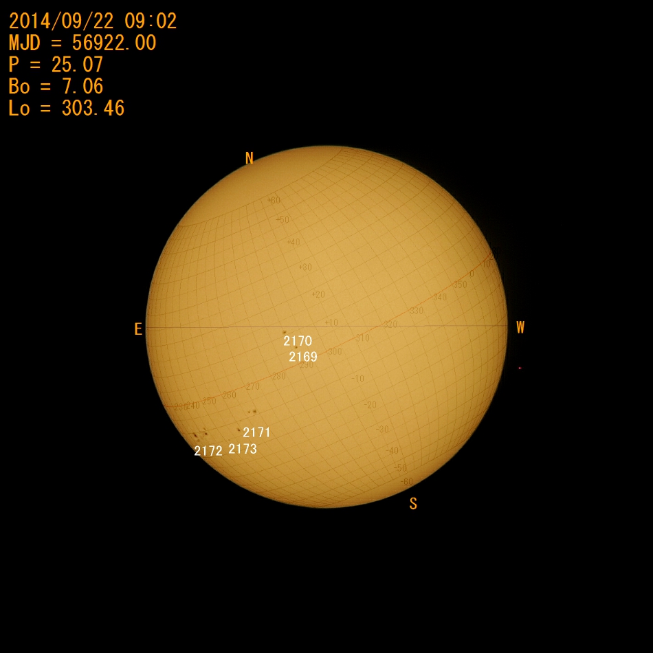 太陽像 2014/09/28T09:30:21から09:30:26までの10/10枚